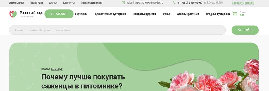 В последние годы садоводство в России демонстрирует устойчивую тенденцию роста и развития. Питомник «Розовый сад Черноземья», расположенный в г. Бутурлиновка, предлагает большой ассортимент саженцев роз самых разных групп и сортов, а также плодовых деревьев, кустарников и декоративных растений.