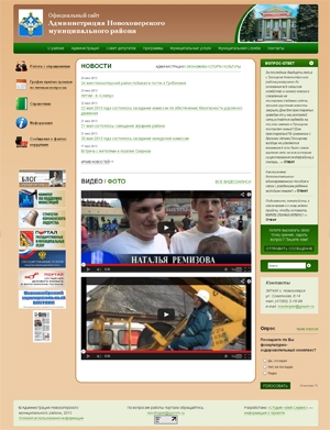 Главная страница сайта позволяет посетителю узнать актуальные новости администрации района, экономики, культуры и спорта. Дизайн сайта прост и интуитивно понятен. Здесь можно ознакомиться с графиком приема граждан администрацией Новохоперского района, задать интересующий Вас вопрос, а также оставить обращение по факту коррупции.