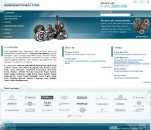 Цвет синей стали, как акцент в оформлении цветового решения сайта, раскрывает его принадлежность к сфере точных механизмов, составными и неотъемлемыми частями которых являются запасные части для всех видов сельскохозяйственной техники.