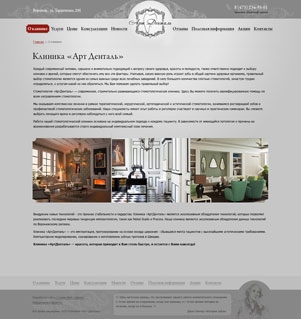 Ресурс клиники отличается большой информативностью, что было и остается немаловажным признаком профессионализма для клиентов. Промо-баннер на главной странице сайта сразу вводит посетителя в курс дела и даёт ясное представление о сфере деятельности компании. Кроме того, на сайте в разделе «Полезная информация» собрана информация по различной тематике в области стоматологии, необходимая каждому пациенту. Полная открытость и читабельность сайта компании «АртДенталь» позволяет посетителям легко найти как контактную информацию, так и любую другую, которая им необходима. Удобство навигации, простое меню сайта, а также полная структура медицинских услуг с подробным описанием процесса и стоимости, представленная на сайте, гораздо облегчают эту задачу клиенту.