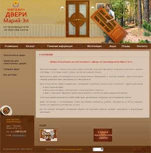 Основная концепция дизайна — сделать акцент на материале, с которым работает заказчик. Необходимым условием было соединить богатство, надежность и сосновый лес. Задача выполнена вполне за счет находчивости дизайнера, сумевшего уже в шапке соединить все необходимые элементы. Выбор в качестве основных тонов оттенков коричневого и бежевого подчеркнули заданное направление.