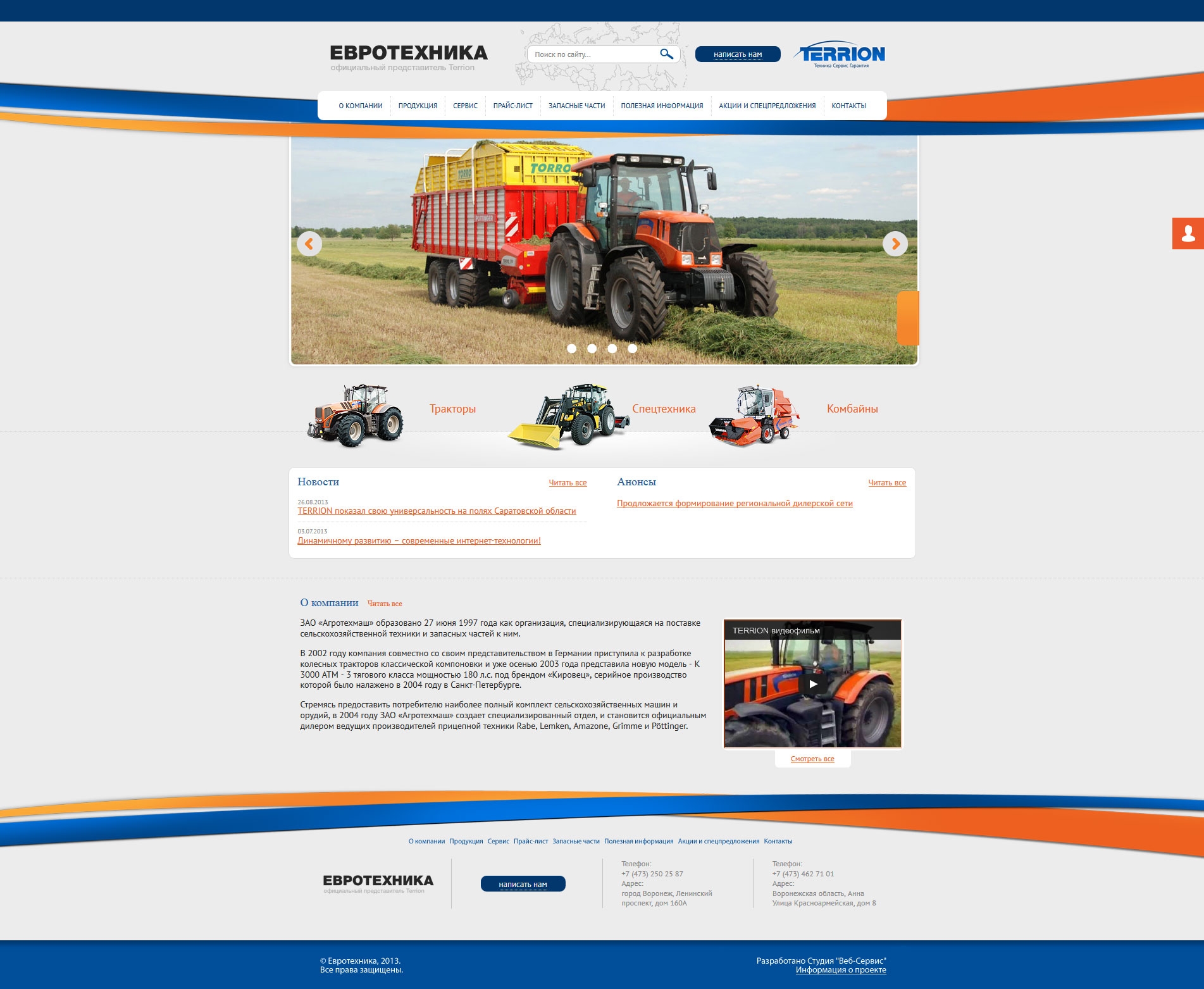 Невидимая глазу, сложная структура хитросплетенных кодов и алгоритмов, предстаёт перед обычным пользователем в виде удобного современного сайта. Ресурс имеет интуитивно понятную структуру и простую навигацию. Это позволяет находить любой интересующий материал в считанные секунды. Кроме того, на сайте компании работает сервис, предназначенный для отправки запроса на получение прайс-листа, а также заказа продукции. Пользователю предоставляется возможность отправить администрации сайта сообщение по тем или иным вопросам, а также записаться на сервисное обслуживание. Данный модуль является отличным способом общения с потенциальным клиентом в режиме реального времени.
