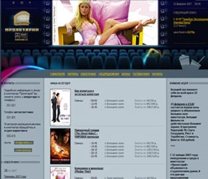 Дизайнерское исполнение интернет-представительства перекликается с фирменным стилем кинотеатра. В «шапочке» проекта расположен демонстрационный баннер, благодаря которому, взгляду посетителей сайта предстает кадр из фильма, показываемого в данный момент. Информация новостного содержания выведена на главную страницу соответственно в разделах: «Новости кино», «Новости кинотеатра», «Внимание акция!», «Последние события», «Скоро на экранах», «Афиша на сегодня».