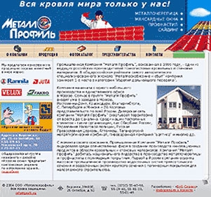 В разделе «О компании» представлена подробная информация о фирме, ее стремительном развитии в мире бизнеса. О сети представительств компании «Металлопрофиль» вы можете узнать, посетив раздел «Представительства». Раздел «Фотокаталог» порадует вас уже готовой продукцией, изготовленной компанией «Металлопрофиль», и приглашает к сотрудничеству на самых выгодных условиях. Особенностью сайта является раздел «Продукция», который позволяет каждому желающему ознакомиться с характеристиками продукции и получить подробное описание любой единицы. Предлагается широкий выбор изделий: металлочерепица, профнастил, сайдинг,и фасадные панели, пластиковые окна и двери. Каждый клиент будет приятно удивлен качеством продукции, ее разнообразием и приятным обслуживанием.