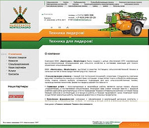 В этом же убеждает и flash - заставка к сайту, наглядно демонстрирующая процесс работы в аграрной отрасли в XXI веке, главными свойствами которых являются сочетание высоких технологий с максимальным удобством их использования. Чем отличается и система навигации сайта: так, помимо удобного разделения всей информации на 7 основных разделов («О компании», «Каталог товаров», «Новости», «Спецпредложения», «Наши партнеры», «Услуги» и «Контакты») предусмотрена возможность просмотра и перехода в разделы каталога продукции с каждой внутренней страницы сайта.