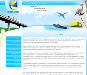 Сайт состоит из восьми разделов, отраженных в функциональном меню слева. Навигация сайта удобна и проста. На главной странице представлена информация о работе компании и перспективах сотрудничества. Раздел «Услуги» содержит информацию об услугах, предоставляемых компанией, и программный модуль «запрос стоимости», позволяющий отправить заявку на интересующее заказчика внутрироссийкое или международное направление.