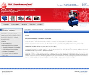 Дизайн сайта компании «ПромЭлектроГрад» сразу даёт понять направление её деятельности благодаря изображённым на нём различным видам промышленного оборудования. Каталог товаров удобно разбит на крупные классы оборудования, и выбор нужной информации не займёт у посетителя много времени.