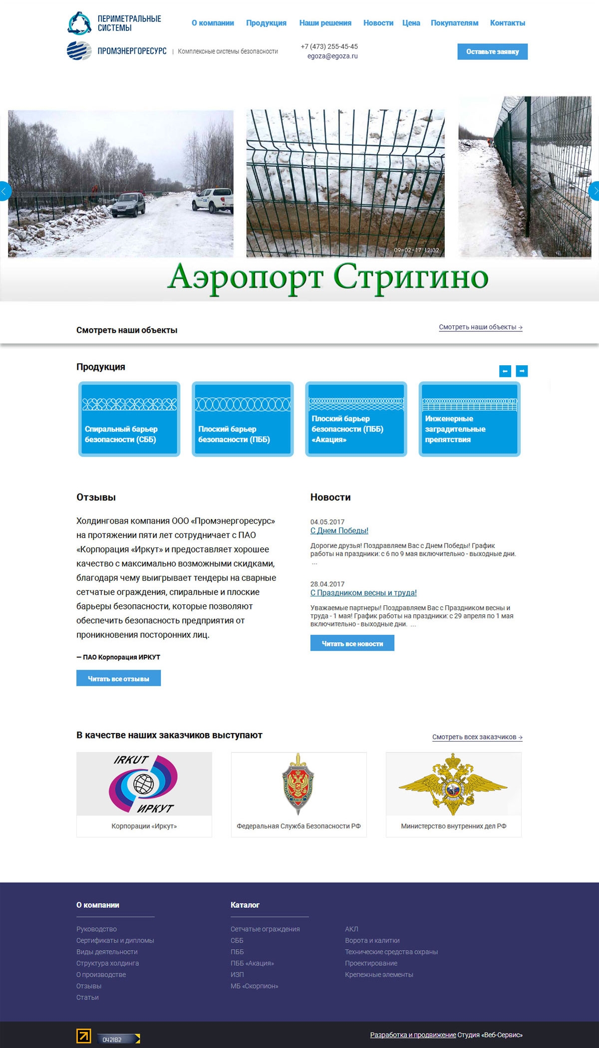 Приняв во внимание комплексный характер поставленной перед холдингом миссии, команда Студии «Веб-Сервис» сделала упор на информативности ресурса, комфортном восприятии контента и лаконичности оформления. Результатом стараний стал качественный ресурс, который можно назвать визуальным отражением компании «Промэнергоресурс – Периметральные системы».