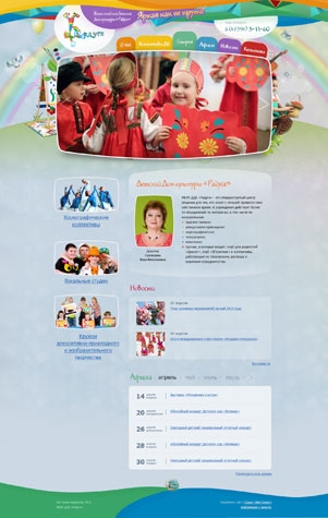 Яркий, солнечный, искрящийся лучиками света, добра и радости, — вот таким предстает перед пользователями новый сайт Борисоглебского Детского Дома культуры «Радуга», над дизайном и стилем которого отлично потрудились сотрудники Студии «Веб-Сервис». Попадая на главную страницу ресурса, поражаешься яркой, задорной и веселой цветовой палитре, в которой оформлен сайт. Детские рисунки, «веселые» буквы логотипа Дома культуры, радужное главное меню, а также слайдер из фотографий галереи на главной странице позволяют с головой окунуться в мире детства, творчества и искусства. Помимо прекрасного дизайна, сайт также оснащен удобной навигацией, благодаря которой каждый посетитель с легкостью найдет необходимую ему информацию. Направления художественной деятельности вынесены на главную страницу, что значительно облегчает поиск. Кроме того, важным достоинством ресурса стало появление афиши событий и блока новостей Дома культуры, с помощью которых каждый желающий сможет быть всегда в курсе событий, происходящих в ДДК «Радуга».