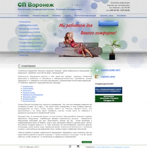 Глядя на новый сайт СП «Воронеж», хочется назвать его лёгким и воздушным, и это является лучшим определением для фирмы, работающей с «воздухом» — с климатическим и вентиляционным оборудованием.