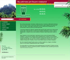 Данный сайт содержит полную информацию о компании и предлагаемом ассортименте: полный список продукции и оборудования, его цены и иллюстрации товара для наглядного представления. Описание каждой модели товара снабжено исчерпывающим перечнем технических характеристик. В меню представлены основные разделы: «О компании», «Каталог товаров», «Объекты», «Сделать заказ», «Контакты».