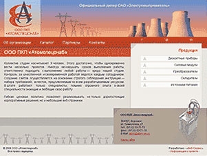 Основные пункты меню стандартные: блок «Об организации», «Партнеры», «Контакты», отображают общую информацию об организации, предоставляемой продукции, а так же список партнеров и предоставляемая ими продукция и т. д. В разделе «Каталог» представлен список оборудования, тип продукции, наименование модели и краткая характеристика некоторых из них.