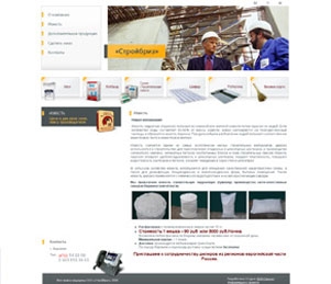 Сайт строительной компании по возможности должен быть лаконичным, деловым и информативным. В этом духе выполнен дизайн данного интернет-представительства: основные цвета — белый и серый (учитывалось и то, что основным направлением деятельности компании является реализация извести). Нескучным дизайн делает добавление оранжевого цвета, яркая, несмотря на свой деловой стиль, шапка и горизонтальное меню основных видов продукции в виде крупных графических элементов.